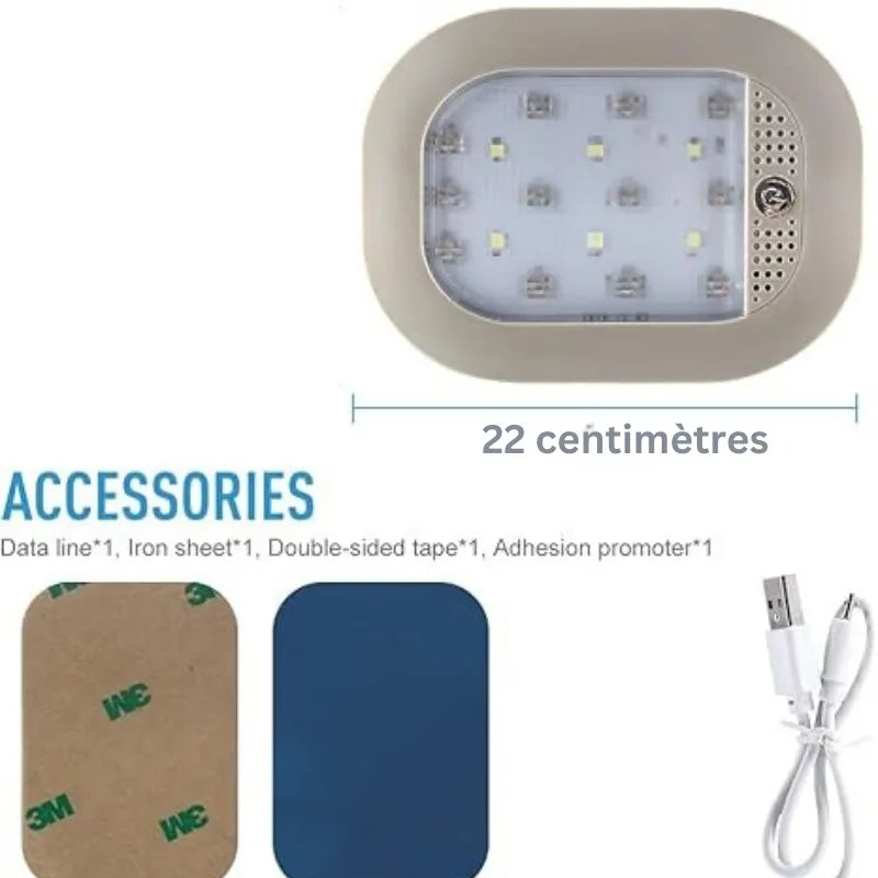 Lumière de plafond pour voiture avec une batterie longue durée et recharge USB